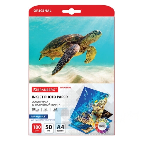 Фотобумага глянцевая, A4, 180 г/м2, односторонняя, 50 листов, BRAUBERG ORIGINAL, 363986