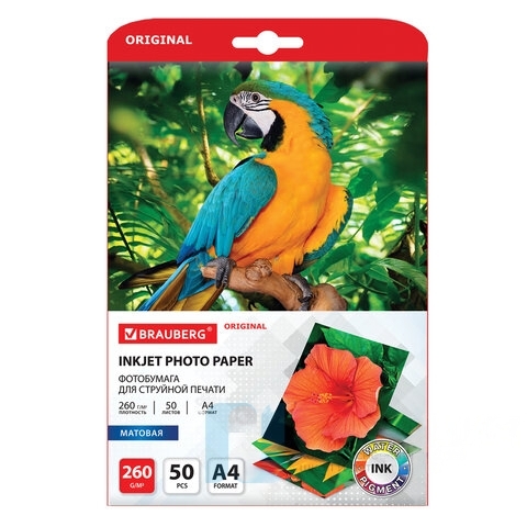 Фотобумага матовая, А4, 260 г/м2, односторонняя, 50 листов, BRAUBERG ORIGINAL, 363993