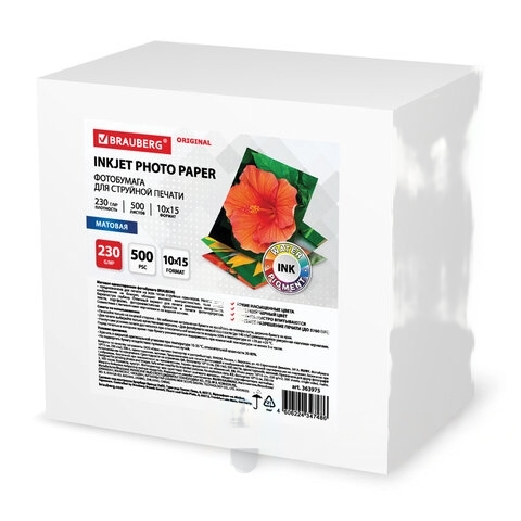 Фотобумага матовая, 10х15 см, 230 г/м2, односторонняя, 500 листов, BRAUBERG ORIGINAL, 363975