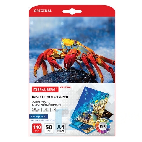 Фотобумага глянцевая, А4, 140 г/м2, односторонняя, 50 листов, BRAUBERG ORIGINAL, 363982