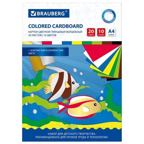 Картон цветной А4 МЕЛОВАННЫЙ ВОЛШЕБНЫЙ EXTRA, 20 листов, 10 цветов, в папке, BRAUBERG, 200х290 мм, 113546