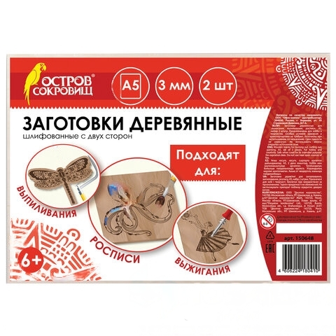 Заготовки деревянные для выжигания, выпиливания, росписи, А5, набор 2 штуки, ОСТРОВ СОКРОВИЩ, 150648
