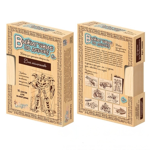 Набор досок для выжигания "Для мальчиков. Умелец", 8 с рисунком, 2 чистых, 15х21 см, 10 КОРОЛЕВСТВО, 03866