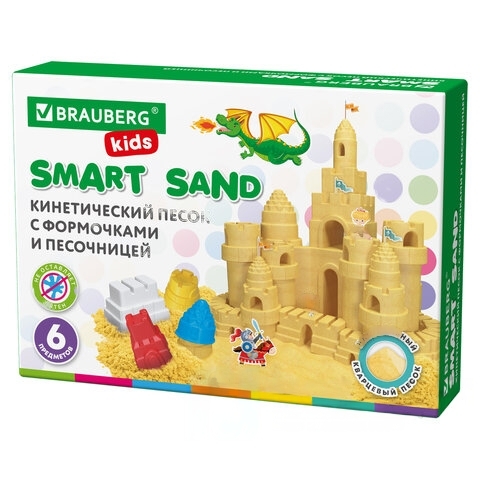 Умный песок BRAUBERG KIDS абсолютно безопасен - на 98% он состоит из чистейшего кварцевого песка и на 2% из безвредного полимера, благодаря которому песок прекрасно держит форму, не оставляет следов на руках и одежде, эффектно тянется. Этот песок не засыхает, может долго храниться в плотно закрытой таре, легко собирается с поверхности, и играть с ним можно снова и снова в любое время года.