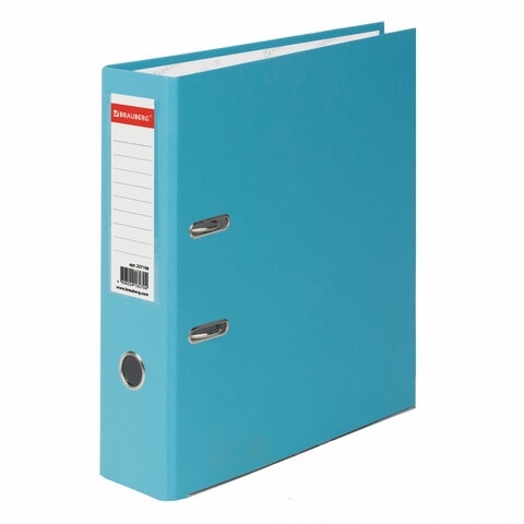 Папка-регистратор BRAUBERG с покрытием из ПВХ, 80 мм, с уголком, бирюзовая (удвоенный срок службы), 227198