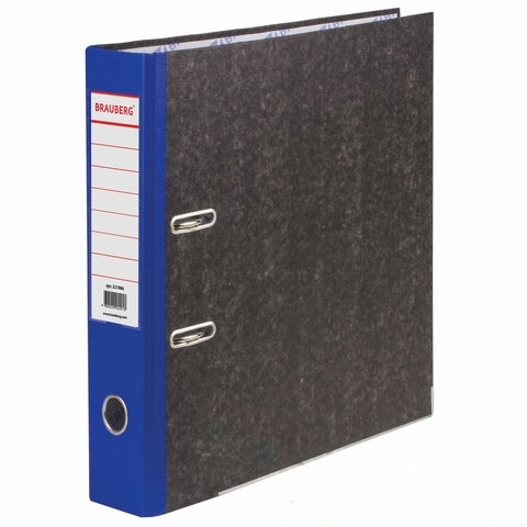 Папка-регистратор BRAUBERG, мраморное покрытие, А4 +, содержание, 70 мм, синий корешок, 221986