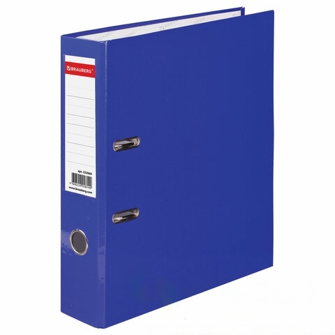 Папка-регистратор BRAUBERG, ламинированная, 75 мм, синяя, 222069