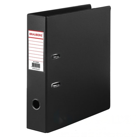 Папка-регистратор BRAUBERG с двухсторонним покрытием из ПВХ, 70 мм, черная, 222649