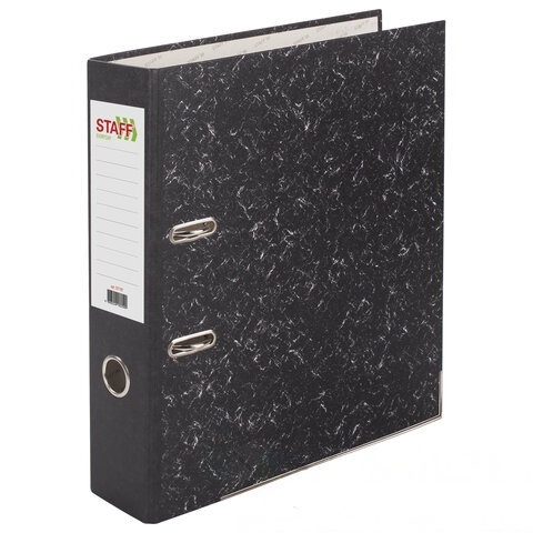 Папка-регистратор STAFF "EVERYDAY" с мраморным покрытием, 70 мм, с уголком, черный корешок, 227187