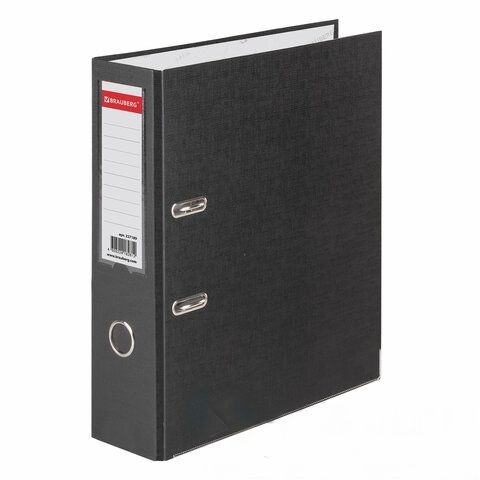 Папка-регистратор BRAUBERG с покрытием из ПВХ, 80 мм, с уголком, черная (удвоенный срок службы), 227189