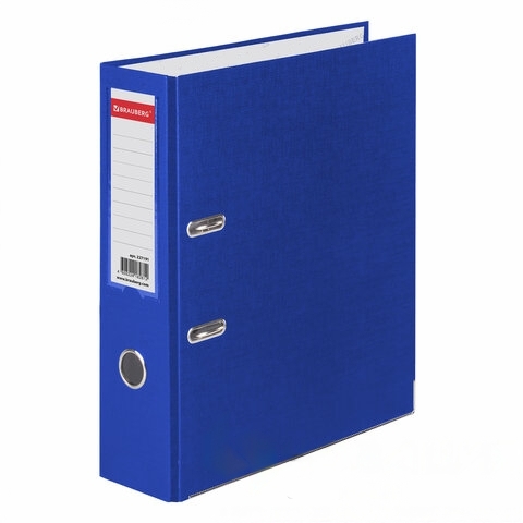 Папка-регистратор BRAUBERG с покрытием из ПВХ, 80 мм, с уголком, синяя (удвоенный срок службы), 227191