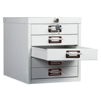 Металлической мебели не страшна коррозия. Качество подтверждается сертификатом. На корпусе предусмотрен центральный замок с ключом. В комплекте есть информационные таблички для каждого ящика.
