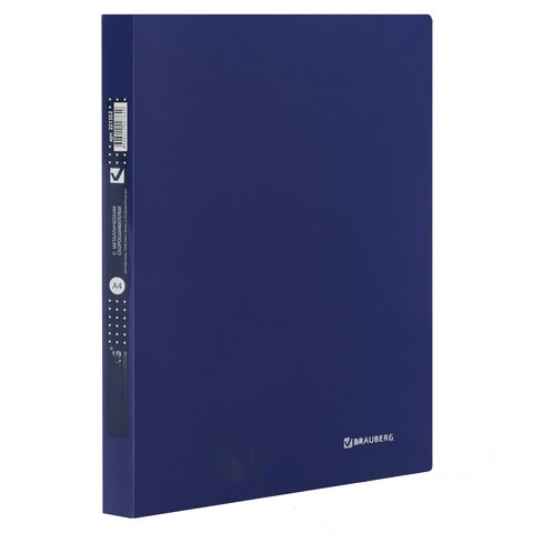 Папка с металлическим скоросшивателем и внутренним карманом BRAUBERG "Диагональ", темно-синяя, до 100 листов, 0,6 мм, 221352