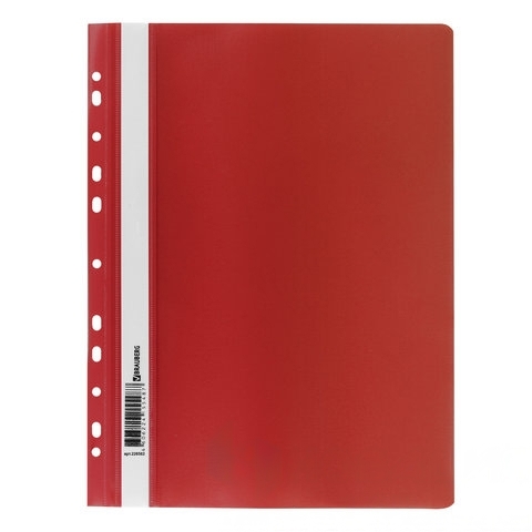 Скоросшиватель пластиковый с перфорацией BRAUBERG, А4, 140/180 мкм, красный, 226582