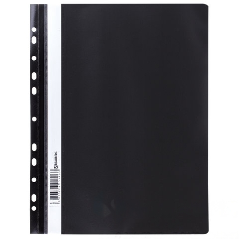 Скоросшиватель пластиковый с перфорацией BRAUBERG, А4, 140/180 мкм, черный, 226586