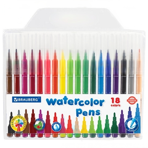 Фломастеры BRAUBERG "PREMIUM", 18 цветов, КЛАССИЧЕСКИЕ, вентилируемый колпачок, ПВХ-упаковка с европодвесом, 151935