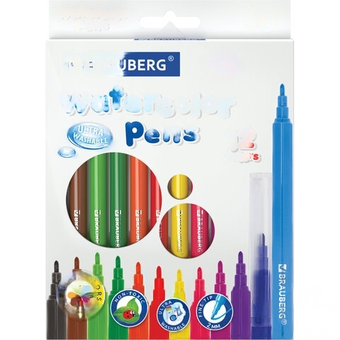 Фломастеры BRAUBERG "PREMIUM", 12 цветов, УЛЬТРАСМЫВАЕМЫЕ, классические, вентилируемый колпачок, картонная коробка с европодвесом, 151938