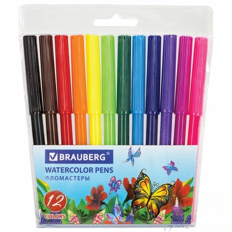 Фломастеры BRAUBERG "Wonderful butterfly", 12 цветов, вентилируемый колпачок, пласт. упаковка, увеличенный срок службы, 150522