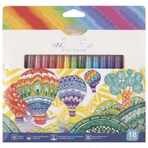 Фломастеры ГАММА "Классические", 18 цветов, вентилируемый колпачок, картонная упаковка, 180319_12