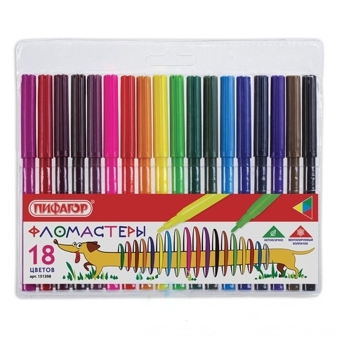 Фломастеры ПИФАГОР "Веселая такса", 18 цветов, вентилируемый колпачок, 151398