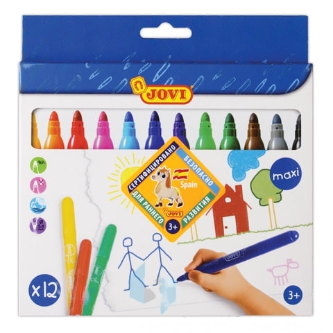 Фломастеры утолщенные JOVI (Испания) "Maxi", 12 цветов, трехгранные, для малышей, вентилируемый колпачок, 1712
