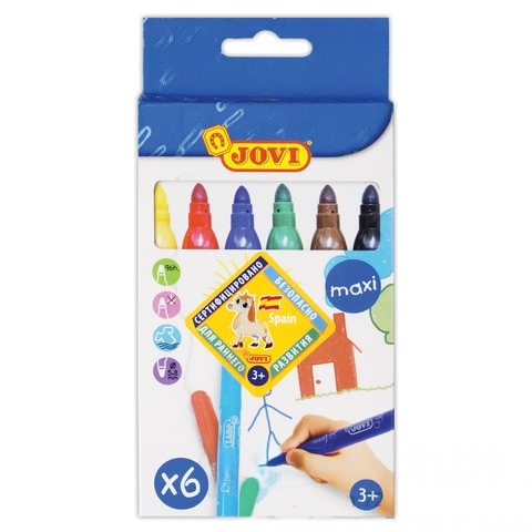 Фломастеры утолщенные JOVI (Испания) "Maxi", 6 цветов, трехгранные, для малышей, вентилируемый колпачок, 1706