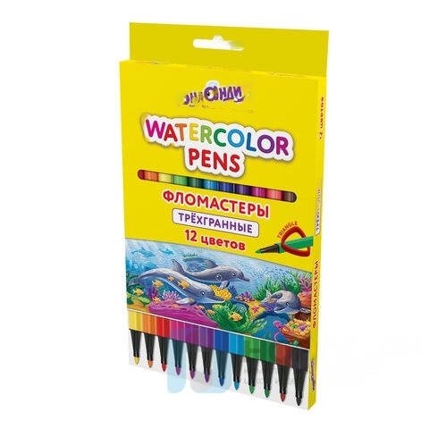 Фломастеры ЮНЛАНДИЯ "ВОДНЫЙ МИР", 12 цветов, трехгранные, вентилируемый колпачок, картон, 152182