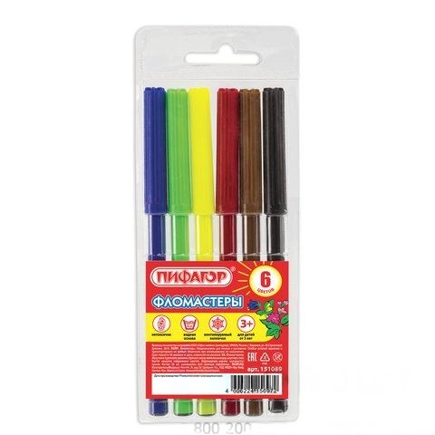 Фломастеры ПИФАГОР, 6 цветов, вентилируемый колпачок, 151089