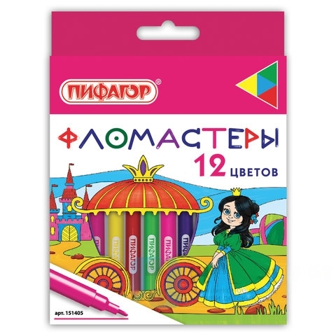 Фломастеры ПИФАГОР "Принцессы", 12 цветов, вентилируемый колпачок, 151405