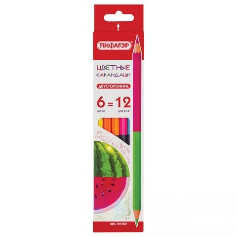 Карандаши двусторонние ПИФАГОР "СОЧНЫЕ ФРУКТЫ", 6 штук, 12 цветов, заточенные, европодвес, 181360