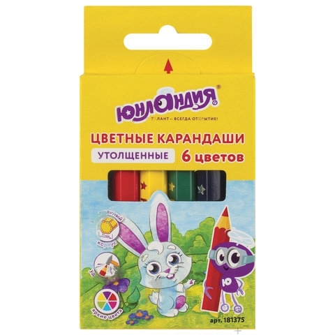 Карандаши цветные утолщенные ЮНЛАНДИЯ "МАЛЫШИ-КАРАНДАШИ", 6 цветов, укороченные заточенные, 181375