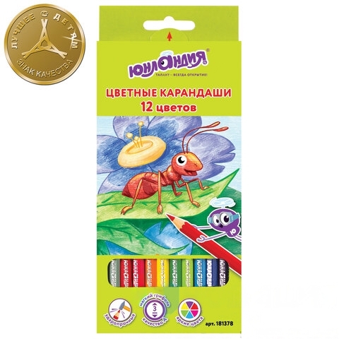 Карандаши цветные ЮНЛАНДИЯ "В ГОСТЯХ У БУКАШЕК", 12 цветов, классические заточенные, 181378