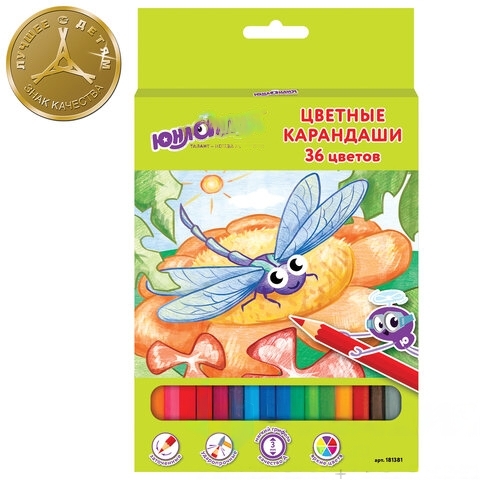 Карандаши цветные ЮНЛАНДИЯ "В ГОСТЯХ У БУКАШЕК", 36 цветов, классические заточенные, 181381