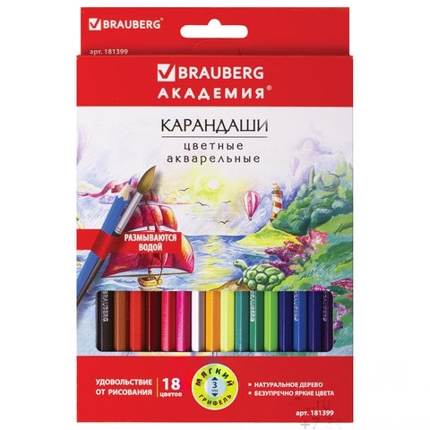 Карандаши цветные акварельные BRAUBERG "АКАДЕМИЯ", 18 цветов, шестигранные, высокое качество, 181399