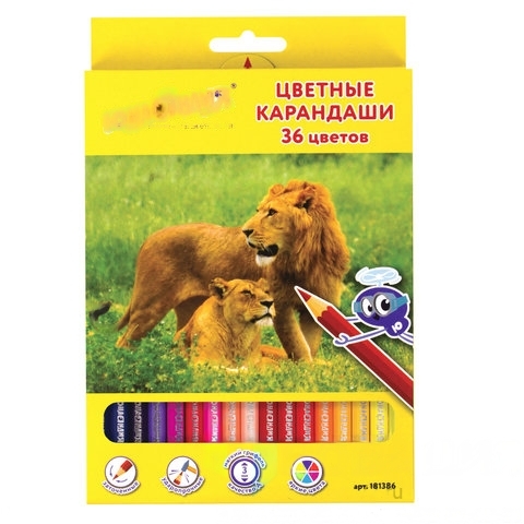 Карандаши цветные ЮНЛАНДИЯ "МИР ЖИВОТНЫХ", 36 цветов, классические заточенные, 181386