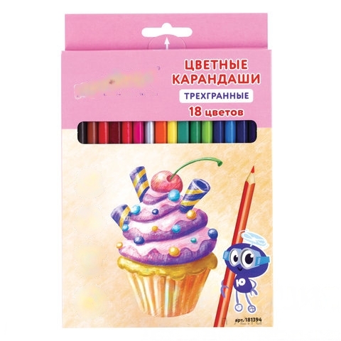 Карандаши цветные ЮНЛАНДИЯ "СЛАДКИЕ ИСТОРИИ", 18 цветов, трехгранные заточенные, 181394
