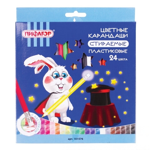 Карандаши цветные стираемые с резинкой ПИФАГОР "МАГИЯ", 24 цветов, пластиковые, 181576