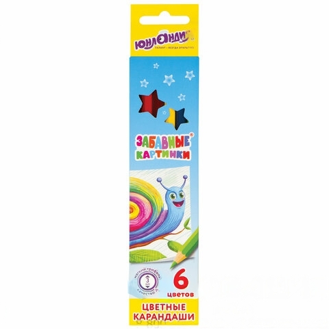 Карандаши цветные мягкие ЮНЛАНДИЯ "ЗАБАВНЫЕ КАРТИНКИ", 6 цветов, классические, заточенные, 181642