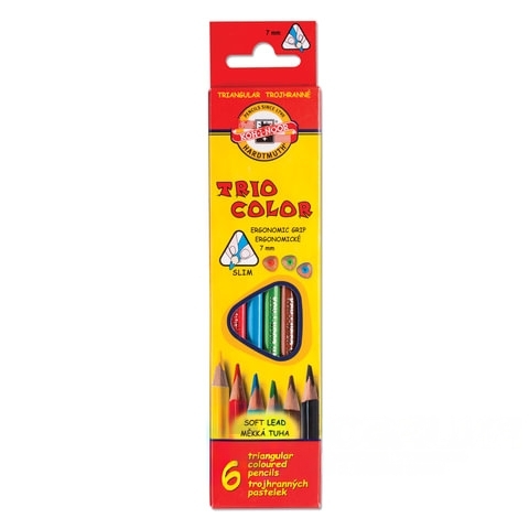 Карандаши цветные 6 ЦВЕТОВ KOH-I-NOOR "Triocolor", трехгранные, грифель 3,2 мм, европодвес, 3131/6, 3131006004KSRV