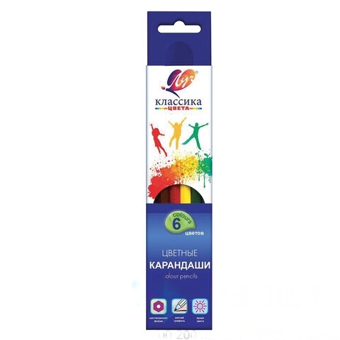 Карандаши цветные ЛУЧ "Классика", 6 цветов, заточенные, шестигранные, картонная упаковка, 29С 1709-08