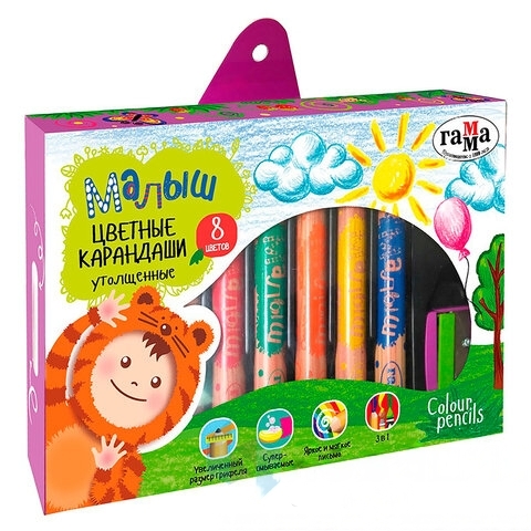 Карандаши цветные утолщенные ГАММА "Малыш", 8 цветов, заточенные, с точилкой, 051218_03