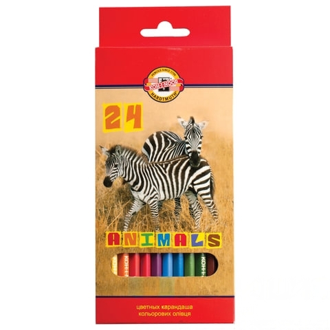Карандаши цветные KOH-I-NOOR "Animals", 24 цвета, грифель 2,8 мм, заточенные, европодвес, 3554/24, 3554024008KSRU