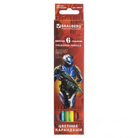 Карандаши цветные BRAUBERG "Star Patrol", 6 цветов, заточенные, картонная упаковка, 180519