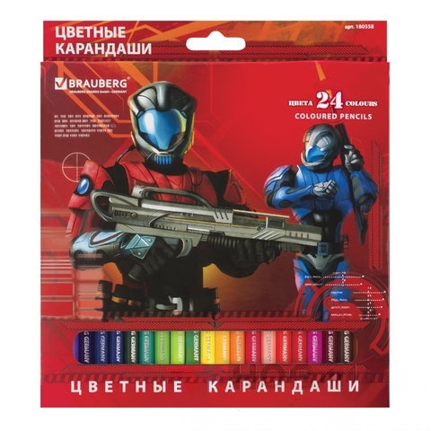 Карандаши цветные BRAUBERG "Star Patrol", 24 цвета, заточенные, картонная упаковка, 180558