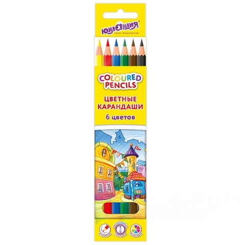 Карандаши цветные ЮНЛАНДИЯ "ДОМИКИ", 6 цветов, классические, пластиковые, грифель мягкий 3 мм, 181835