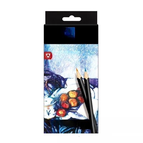Карандаши цветные BRAUBERG "Artist line", 12 цветов, трехгранные, черный корпус, высшее качество, 180596