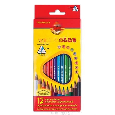 Карандаши цветные KOH-I-NOOR "Triocolor", 12 цветов, трехгранные, грифель 3,2 мм, европодвес, 3132012004KSRU