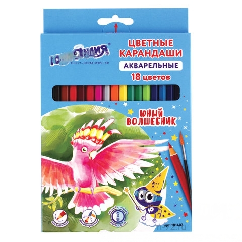 Карандаши цветные акварельные ЮНЛАНДИЯ "ЮНЫЙ ВОЛШЕБНИК", 18 цветов, шестигранные, заточенные, 181403