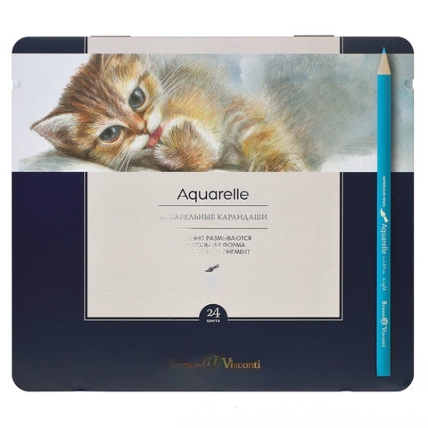 Карандаши цветные акварельные BRUNO VISCONTI Aquarelle, 24 цвета, металлический пенал, 30-0064