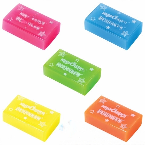 Ластик ЮНЛАНДИЯ "НЕОНЧИКИ", 38х24х12 мм, цвет ассорти, экологичный ПВХ, 228077